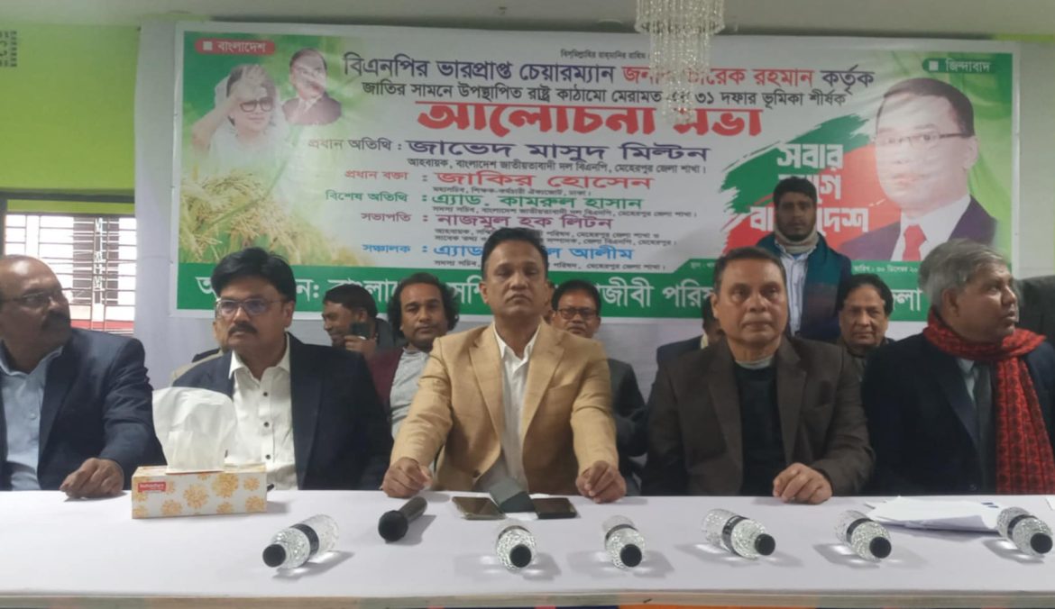 মেহেরপুরে পেশাজীবী সংগঠনের উদ্যোগে বিএনপি’র ৩১দফা বাস্তবায়নের লক্ষ্যে আলোচনা সভা