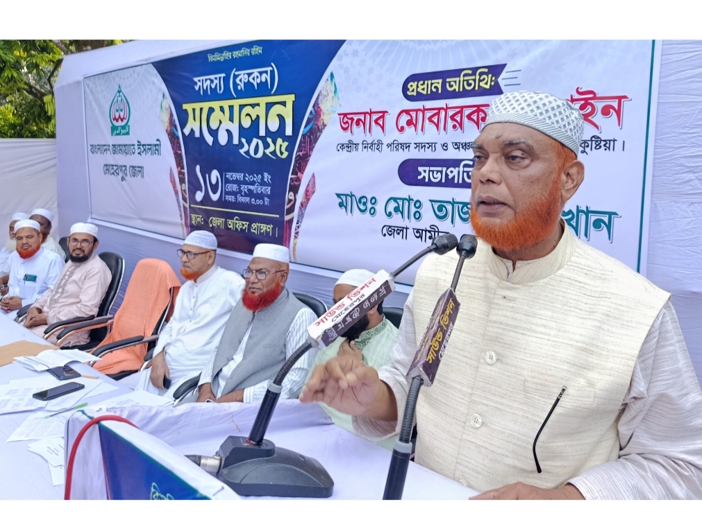 । আজ বৈকাল সাড়ে ৩ টার সময় জেলা জামায়েতের অফিস পশুহাট সংলগ্ন চুয়াডাঙ্গা রোড, মেহেরপুরে অনুষ্ঠিত রকন ও সম্মেলনের সভাপতিত্ব করেন মেহেরপুর – মুজিবনগর ১ আসনের সংসদ সদস্য পদপ্রার্থী ও জেলা জামায়াতের আমীর মাওলানা তাজ উদ্দিন খান, প্রধান আলোচক ছিলেন জনাব মোবারক হোসাইন , কেন্দ্রীয় নির্বাহী পরিষদ সদস্য* ও অঞ্চল পরিচালক, যশোর-কুষ্টিয়া অঞ্চল। বক্তব