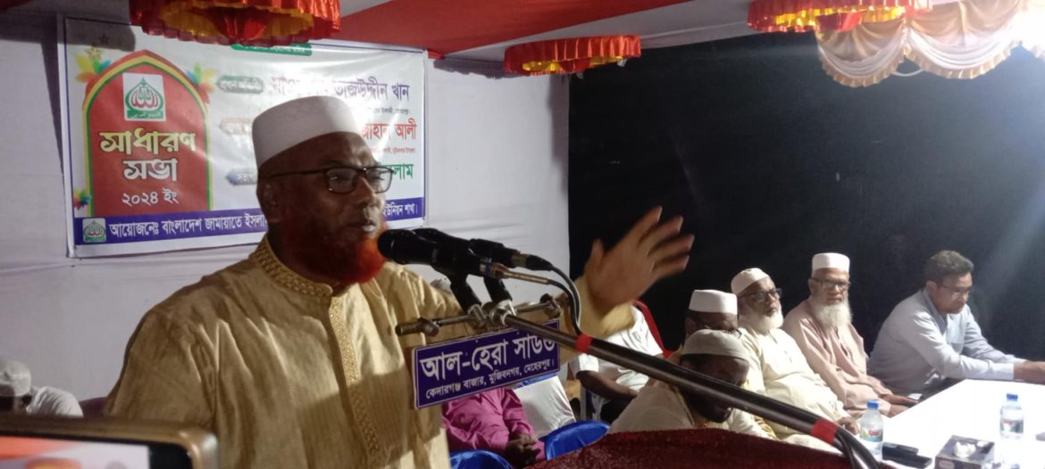 মেহেরপুর জেলার মুজিবনগর উপজেলার মোনাখালী ইউনিয়নের রশিকপুর ৯ নম্বর ওয়ার্ডে সাধারণ সভায় প্রধান মেহমান হিসাবে উপস্থিত থেকে বক্তব্য দান কালে মেহেরপুর জেলা জামায়াতের আমীর মাওলানা তাজ উদ্দিন খান বলেন বিগত সাড়ে ১৫ টি বছর এদেশে উন্নয়নের নামে অত্যাচারী জালিম সরকার হাজার হাজার কোটি টাকা আত্মসাৎ করেছে, দেশের অর্থনীতি ধ্বংস করে বিদেশে অর্থ পাচার করেছে,শত শত বাড়ি করেছে,,বিরোধী দলের ওপরে জুলুম নিপীড়ন চালিয়ে গুম খুনের ইতিহাস রচনা করেছে,কিন্তু বাংলাদেশ জামাতে ইসলামী গুম খুন জেল হাজতের ভয় করে না, যুগে যুগে যারাই ইসলামের বিপক্ষে অবস্থান নিয়েছে তারাই ধ্বংস প্রাপ্ত হয়েছে,।