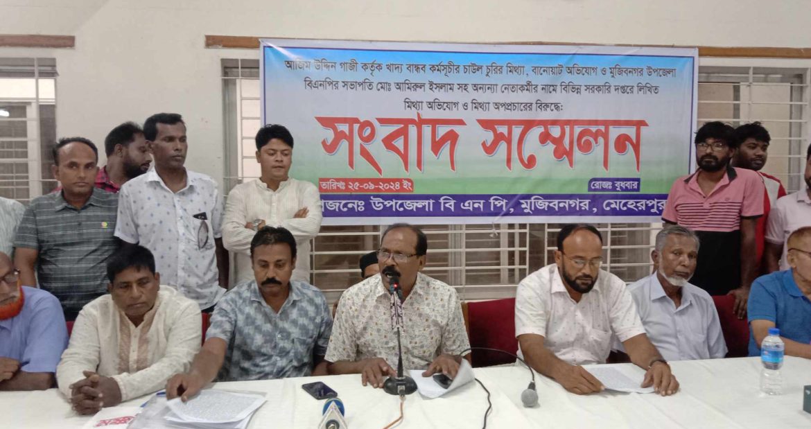 মুজিবনগরে সরকারি চাল চুরি যাওয়ার মিথ্যা অভিযোগের বিষয়ে উপজেলা বিএনপির সংবাদ সম্মেলন