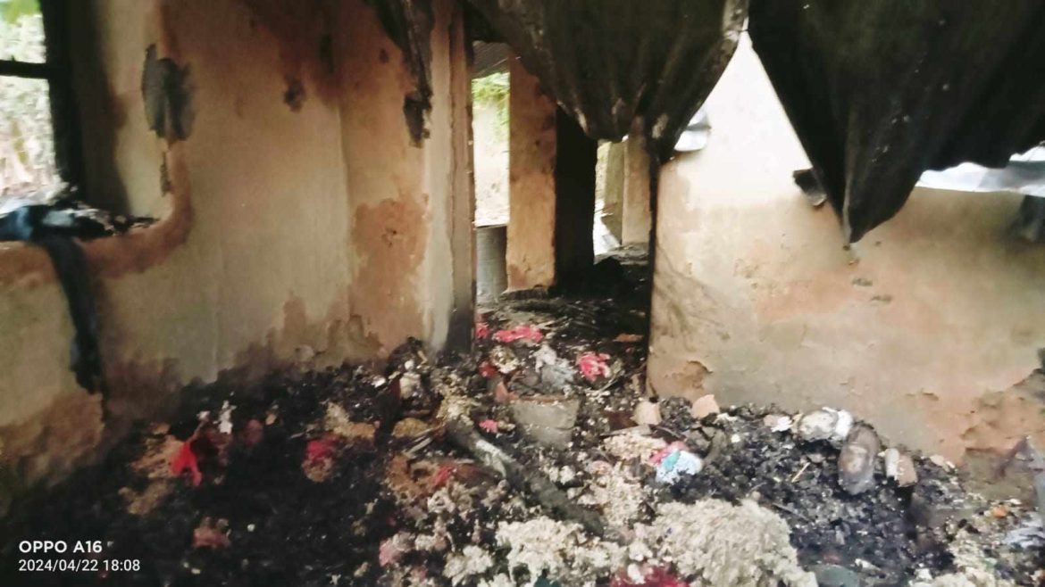 মুজিবনগর দারিয়াপুর গ্রামে বিদ্যুতের শর্ট সার্কিটে আগুনে পুড়ে ছাই অসহায় প্রতিবন্ধী ফরিদা খাতুনের ঘর।