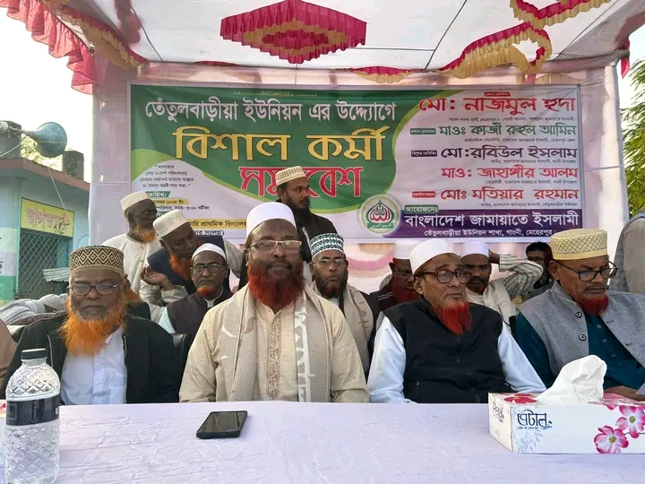 গাংনী উপজেলার তেঁতুলবাড়িয়া ইউনিয়ন জামায়াতে ইসলামীর উদ্যোগে এক কর্মী সমাবেশ অনুষ্ঠিত হয়েছে। বৃহস্পতিবার (২৭ নভেম্বর/২৫) বিকেল ৩টায় পলাশীপাড়া সরকারি প্রাথমিক বিদ্যালয় মাঠে এ সমাবেশ অনুষ্ঠিত হয়।