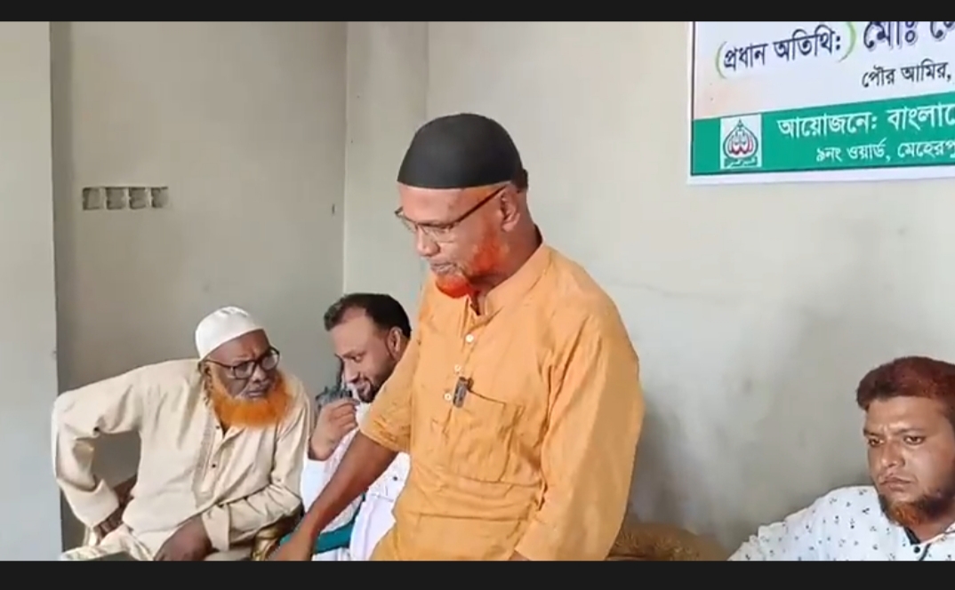 বাংলাদেশ জামায়াতে ইসলামী মেহেরপুর পৌর শাখা, ৯নং ওয়ার্ড এর আয়োজনে শারদীয় দূর্গাৎসব উপলক্ষে সনাতন ধর্মাবলম্বীদেরা মাঝে উপহার সামগ্রী বিতরণ অনুষ্ঠিত হয়েছে। অনুষ্ঠানের প্রধান অতিথি হিসাবে উপস্থিত ছিলেন মেহেরপুর পৌরসভার মেয়র পদপ্রার্থী ও জামায়াতের পৌর আমীর মোঃ সোহেল রানা (ডলার) বিশেষ অতিথি হিসেবে উপস্থিত ছিলেন সাবেক শিক্ষা অফিসার ও পৌর পেশাজীবী বিভাগের সম্মানিত সভাপতি মোঃ নুর রহমান, ৭ নম্বর ওয়ার্ডের জামায়াতের সভাপতি মো: রবিউল ইসলাম, পৌর ৯ নম্বর ওয়ার্ড সাধারণ সম্পাদক মো: সোহেল রানা সহ সনাতন ধর্মাবলম্বী মানুষগুলো উপস্থিত ছিলেন। বক্তারা বলেন সকল ধর্মের মানুষ আমরা সবাই বাংলাদেশী এই দেশটাকে এগিয়ে নিয়ে যাওয়ার জন্য সকল ধর্মের মানুষ এক হয়ে কাজ করতে হবে।