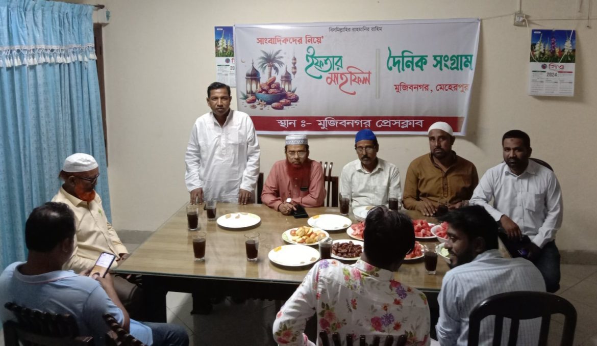 মেহেরপুর মুজিবনগর উপজেলার সাংবাদিকদের নিয়ে দৈনিক সংগ্রামের ইফতারি মাহফিল অনুষ্ঠিত হয়। ইফতার মাহফিলের অনুষ্ঠানে সভাপতিত্ব করেন মুজিবনগর উপজেলা সংবাদদাতা খাইরুল বাশার। অতিথি হিসেবে উপস্থিত ছিলেন দৈনিক সংগ্রামের মেহেরপুর জেলা সাংবাদদাতা জনাব আকতারুজ্জামান, মুজিবনগর প্রেসক্লাবের সভাপতি প্রিন্স ওমর ফারুক, সাধারণ সম্পাদক মোহাম্মদ শফিকুল ইসলাম (শফি,) মোহাম্মদ শের খান, মোঃ ডালিম সোহাগ, সহ মুজিবনগর প্রেসক্লাবের অন্যান্য সদস্যবৃন্দরা উপস্থিত ছিলেন। এ সময় ইফতার সামনে করে দোয়া ও মোনাজাত পরিচালনা করেন ক্লাবের সভাপতি প্রিন্স ওমর ফারুক।