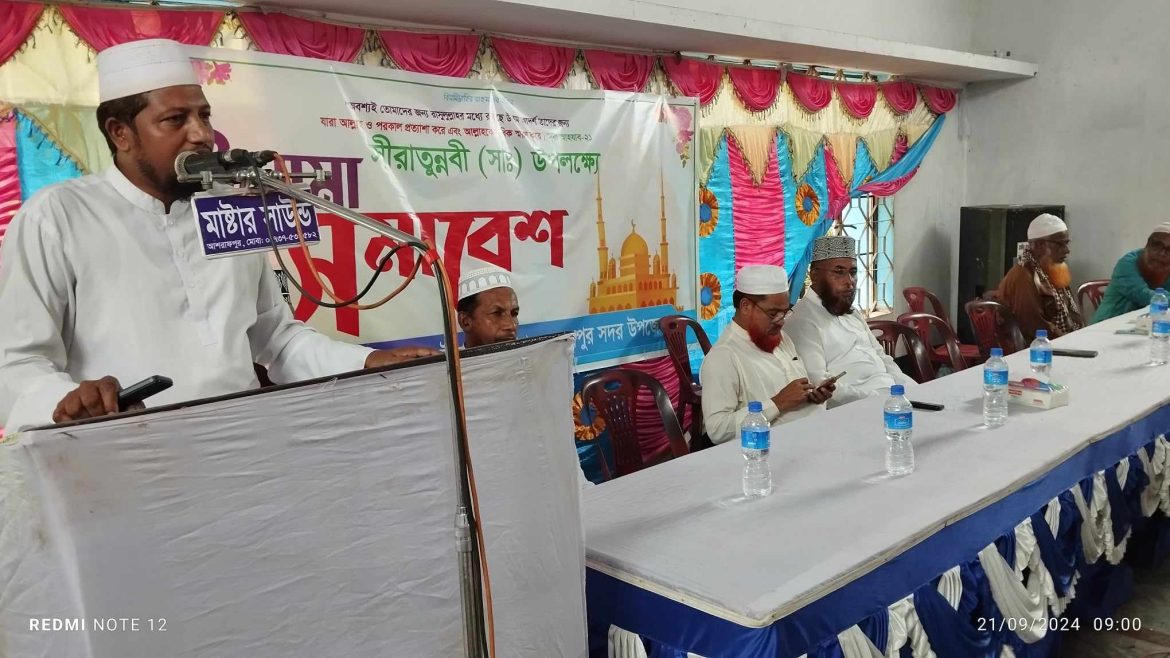 মেহেরপুরে সদর উপজেলা উলামা সমাবেশ অনুষ্ঠিত হয়েছে। আজ সকাল সাড়ে ৮ টার সময় মেহেরপুর ডিএ ডি জামে মসজিদে সমাবেশের অনুষ্ঠানের সভাপতিত্ব করেন জেলা উলামা পরিষদের সভাপতি মাওলানা নাঈম। সমাবেশে প্রধান অতিথি হিসেবে উপস্থিত ছিলেন মেহেরপুর ১ আসনের সংসদ সদস্য প্রার্থী ও জেলা জামায়াতের জেলা আমীর মাওলানা তাজ উদ্দিন খান, অতিথি হিসেবে উপস্থিত ছিলেন জেলা নায়েবে আমীর মাওলানা মাহবুব উল আলম, বক্তব্য পেশ করেন মেহেরপুর সদর উপজেলা জামায়াতের আমীর মাওলানা সোহেল (রানা) উলামা পরিষদের গাংনে উপজেলা সভাপতি মাওলানা জাহাঙ্গীর আলম, সদর উপজেলা জামায়াতের সেক্রেটারি মাস্টার জাব্বারুল ইসলাম, সহ উলামা পরিষদের নেতাকর্মীরা এই সমাবেশে অংশগ্রহণ করেন।